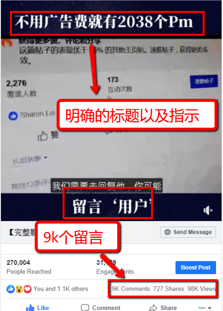 你的帖子必须有双向的互动,明确的指示。并且内容要有足够的吸引力引发对方停下来并且留言。Facebook会根据帖子的留言量以及互动程度决定这个帖子是否要触及给更多人。